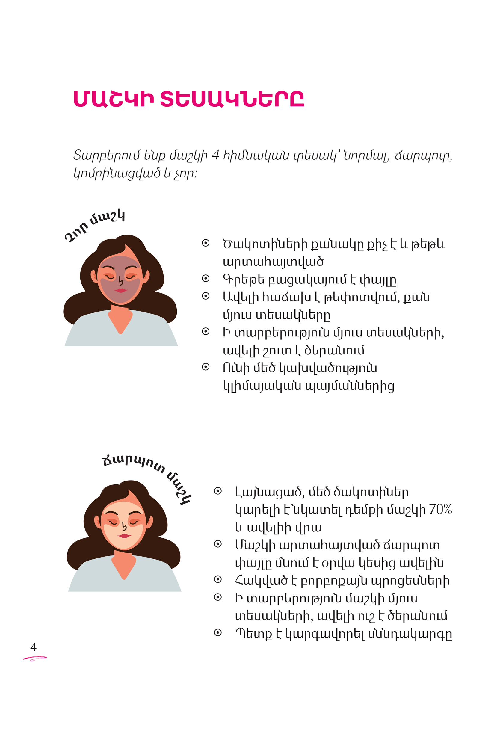Ինչպես սնուցել, պաշտպանել ու արդյունավետ խնամել դեմքի մաշկը։ Պրոֆեսիոնալ խորհուրդներով ու մանրամասն դիտարկումներով ամսագիր, որտեղ կարող եք ընթերցել ամեն ինչ ամենամոդայիկ բաղադրիչների մասին՝ կոլագենից, հիալուրոնաթթուից մինչև անծանոթ թվացող բակուչիոլ, գլիկոլաթթու։