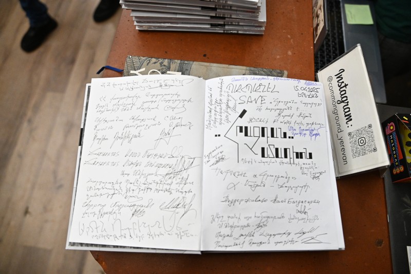 Ի պաշտպանություն ու պահպանություն Հրազդան մարզադաշտի՝ ճարտարապետ Կարեն Բալյանը ներկաներին առաջարկեց գրքի օրինակներից մեկի վրա ստորագրահավաք կազմակերպել։