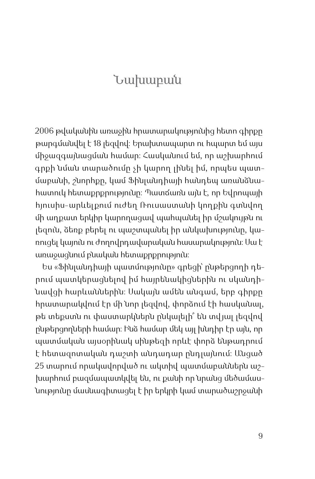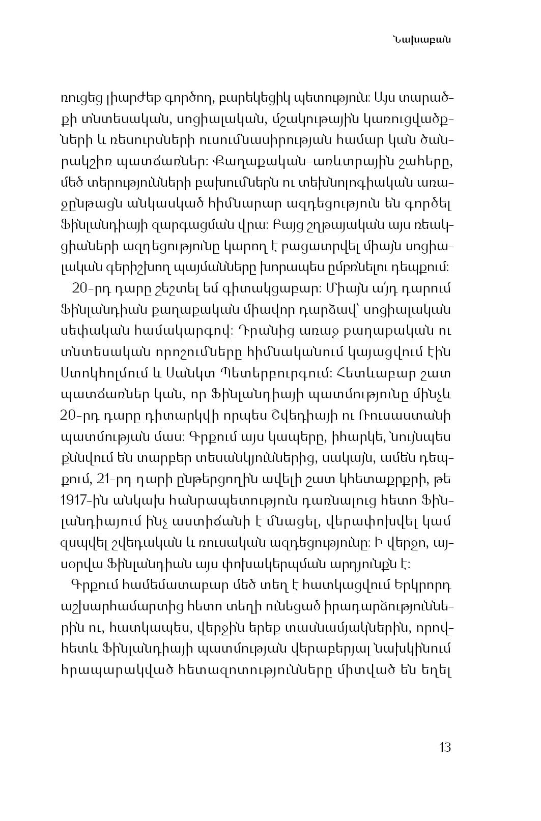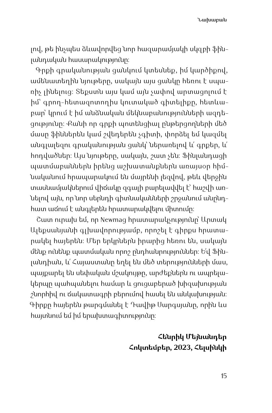Specially for the Armenian translation, the author completed the last chapter of the book, presenting the great historical event for Finland in 2023: becoming a member of NATO.