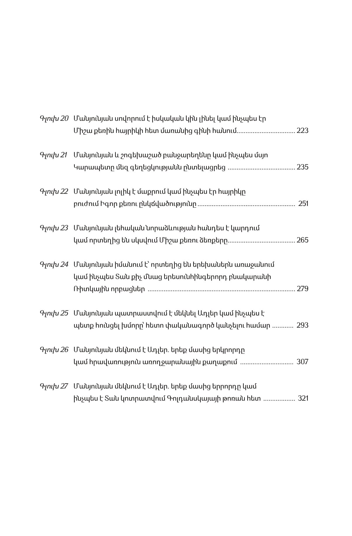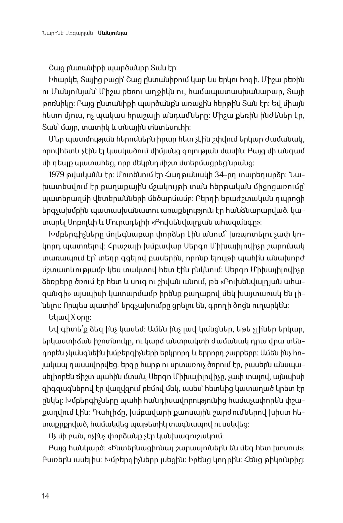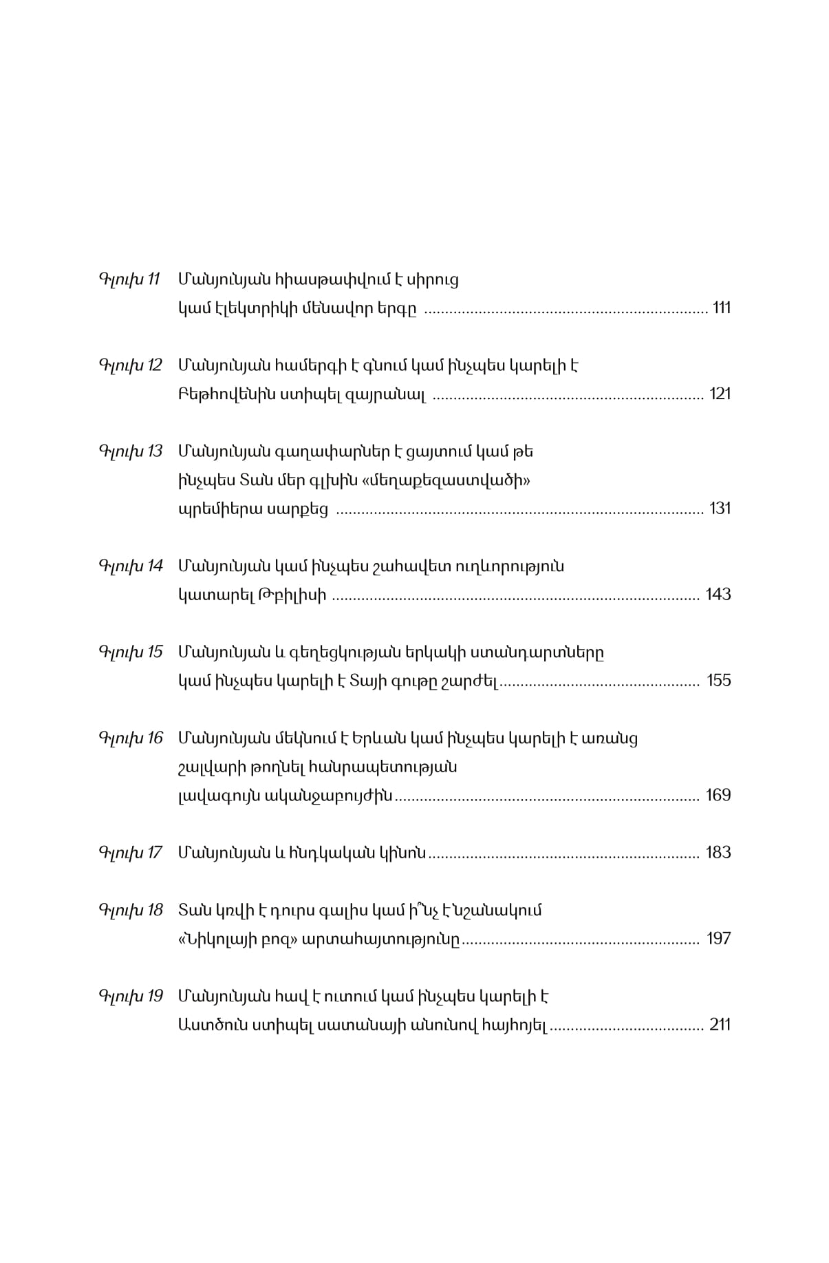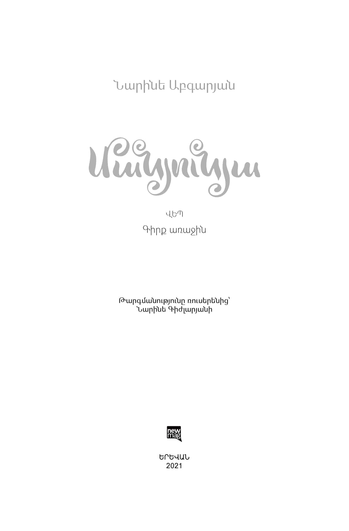 "Manyunya" is an unusual story about childhood in Berd, bright and full of sun and the smell of Armenian crops, about two friends: Narine and Manyunya, the strict and kind Ta who is Manyunya's grandmother, and many relatives who find themselves in constant trouble. A childhood full of tender and funny incidents that make a person happy all his life. The book tells the story of amazing people who somehow managed to grow up without Wi-Fi and computer games.