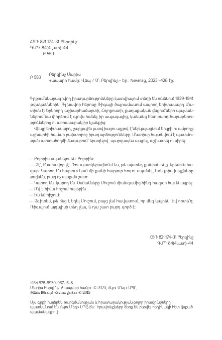 The novel presents the fateful events for the country and the whole world through the eyes of a young, ordinary Latvian. Matisse finds himself in the funnel of the whirlwind of history, dreaming of just living, working and loving.